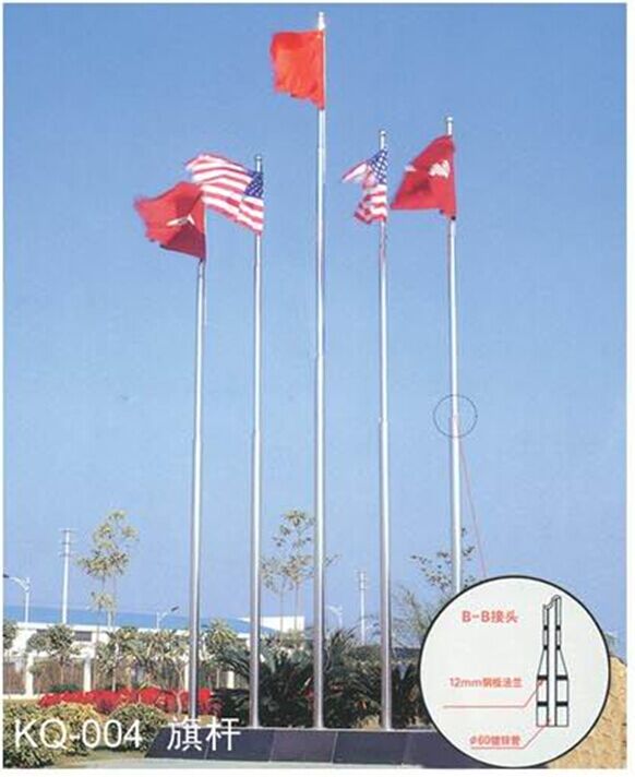 1)如圖所示,旗桿為幾種不同規(guī)格的不銹鋼焊接管,內(nèi)插加強(qiáng)鋼管,通過法蘭焊接而成。