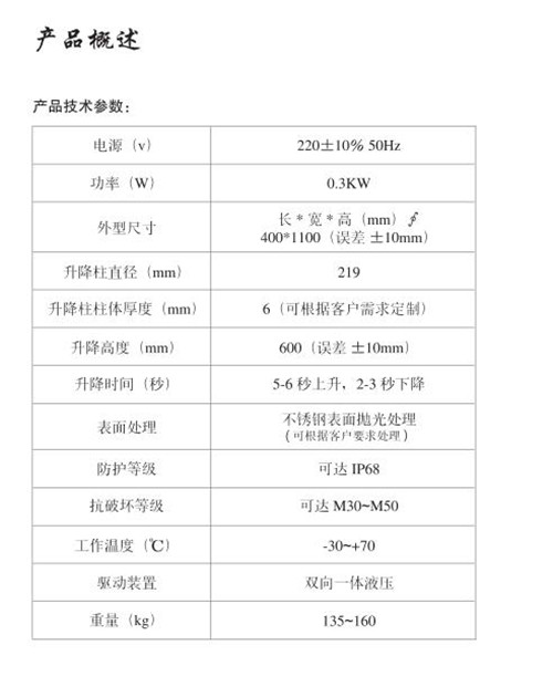 防沖撞升降柱特點(diǎn):